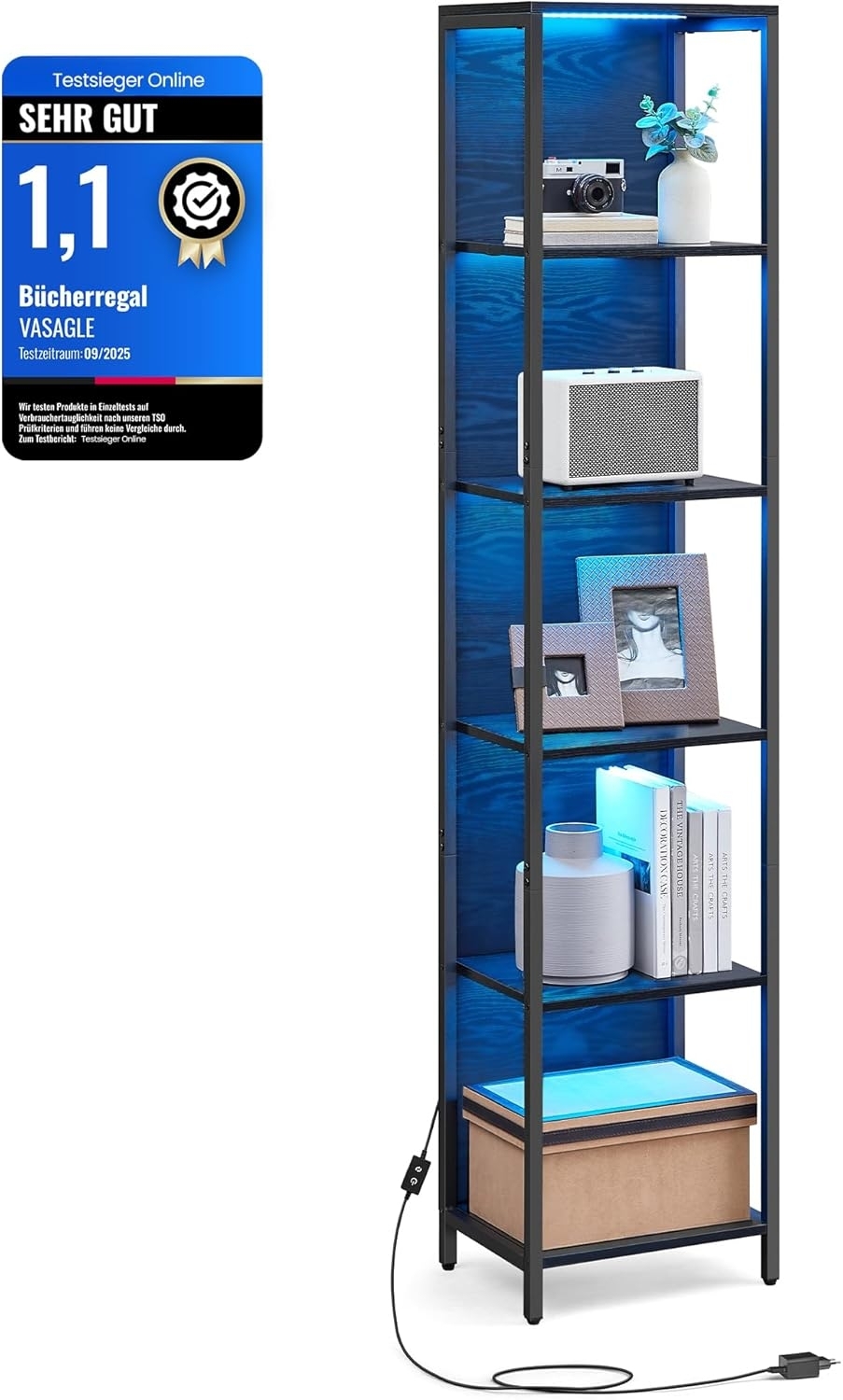 | Name | Vasagle Bücherregal mit 6 Ebenen, Standregal mit einstellbarer LED-Beleuchtung, Regal mit Stahlrahmen, 30,3x40/60x178,6 cm, für Wohnzimmer, Schlafzimmer, Arbeitszimmer, ebenholzschwarz LLSDE121B57 |