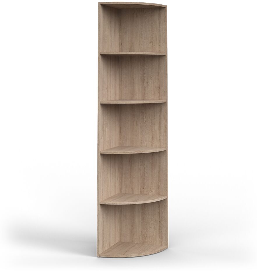 Das Eckregal ist das perfekte Möbelstück für jeden, der ein originelles Design liebt und gleichzeitig praktischen Stauraum benötigt. Durch seine halbkreisförmige Form fügt sich das Regal perfekt in jede Ecke des Raumes ein und wird damit zum Blickfang jeder Wohnung. Die 5 offenen Ablagen bieten ausreichend Platz für Bücher, Dekoration oder andere Gegenstände, die Sie in Szene setzen möchten. Mit der Wandhalterung lässt sich das Regal ganz einfach und sicher an der Wand befestigen. Das Modell lässt sich zudem hervorragend mit anderen Möbeln kombinieren und verleiht so jedem Wohnzimmer eine ganz besondere Note. Gönnen Sie sich jetzt das Eckregal und schaffen Sie sich Ihren ganz eigenen Wohntraum! --- **Technische Details:** **Farbe(n):** Sonoma **Abmessungen:** 40 x 180 x 40 cm (BxHxT) **Artikelgewicht inkl. Verpackung:** 23.2 kg. **Artikelgewicht:** 22.21 kg. --- LIEFERUMFANG: Eckregal, Montageanleitung, Montagematerial .