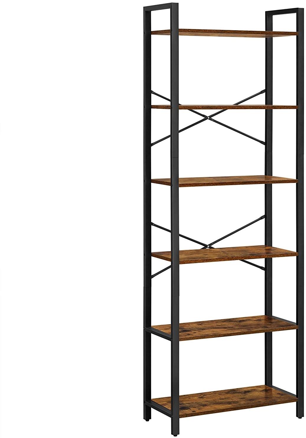in StandregaleVASAGLE Bücherregal mit 6 EbenenAufbewahrungsregal, Stahlgestell, für Wohnzimmer, Arbeitszimmer, Büro und Flur, 66 x 30 x 186 cm, vintagebraun-schwarz LLS062B01