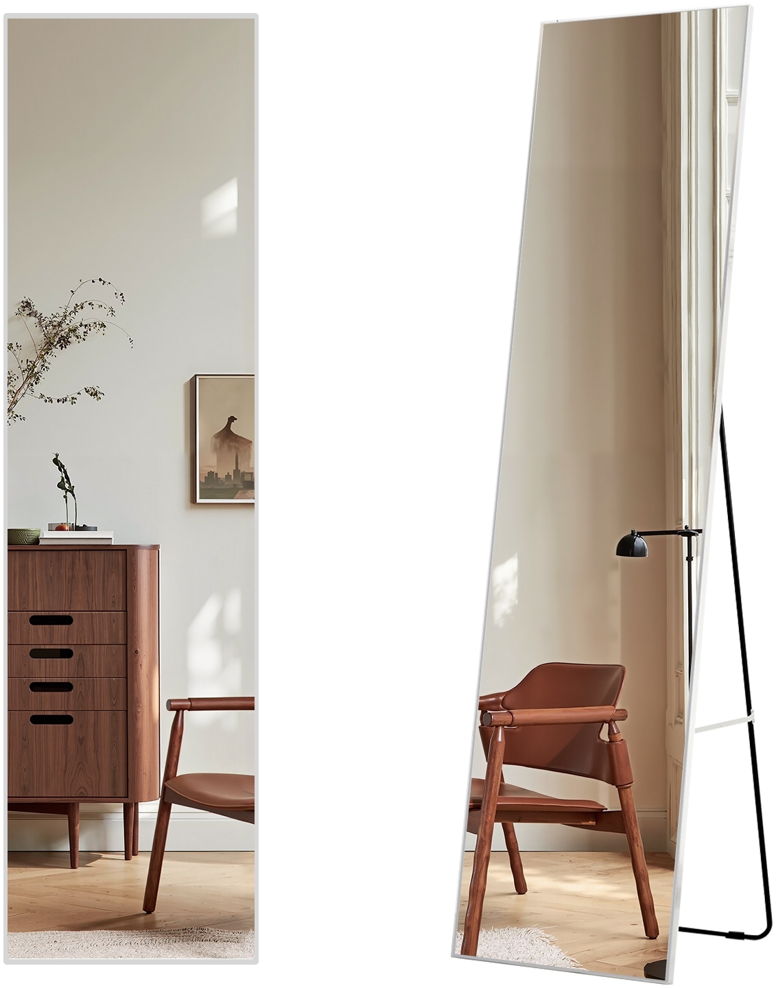 **Produktmerkmale:** Dieser tragbare Ganzk?rperspiegel kann direkt an die Wand gestellt werden, Sie m¨¹ssen das Ger¨¹st nur zusammenklappen, k?nnen es leicht ¨¹berall hinstellen, ohne viel Platz im Raum einzunehmen. Korrosionsbest?ndigen Metallrahmen: Ein robuster und stabiler Metallrahmen mit langer Lebensdauer und einfacher Reinigung, der nur mit einem feuchten Tuch abgewischt werden muss. Multifunktional Vollspiegel: Wandspiegel eignet sich als Eingangs ein sowohl- oder Schminkspiegel wie auch als Dekoration f¨¹r Schlaf-, - Bad& Wohnzimmer. Die Ganzk?rperspiegel mit ausklappbarem und abnehmbaren St?nder auf der R¨¹ckseite. Der Spiegel kann nicht nur stehen, sondern auch an der Wand h?ngen. **Produktparameter:** Form: Rectangle Farbe: Chrome Produktgr??e (HxB): 160x40cm Reingewicht: ca. 7.5 kg Material: Glas + Metallrahmen Rahmen: Rahmen aus Aluminiumlegierung Befestigungsart: Bodenmontage oder der Wand h?ngen oder Lehne dich an die Wand Anwendungsbereich: Schlaf, Bad, Wohnzimmer, cloakroom, Eingang, T¨¹r oder Flur, Hotel **Lieferumfang:** Standspiegel+Montagematerial+Montageanleitung ¡ø Eine sichere und unbesch?digte Lieferung hat Priorit?t f¨¹r uns. Jeder Spiegel ist in einem verst?rkten Karton von hoher Qualit?t verpackt. **Freundliche Tipps:** Die St?nder sind hinter dem Backplate vorinstallier, wenn es an der Wand installiert wird, entfernen Sie bitte die St?nder Bitte best?tigen Sie die gew¨¹nschte Gr??e der Standspiegel, bevor Sie eine Bestellung aufgeben, um Bestellfehler zu vermeiden. (Bitte messen Sie vor dem Kauf eines Badspiegel Ihren Einbauraum aus) **Versand:** Der Versand innerhalb des deutschen Festlandes ist KOSTENLOS.(Inselnzustellung leider nicht m?glich). Der Versand erfolgt durch die Spedition oder den Paketdienst und die Zustellung erfolgt nur bis zur Bordsteinkante. Bitte geben Sie bei einer Bestellung eine g¨¹ltige Telefonnummer und Hausnummer f¨¹r die Avisierung an.