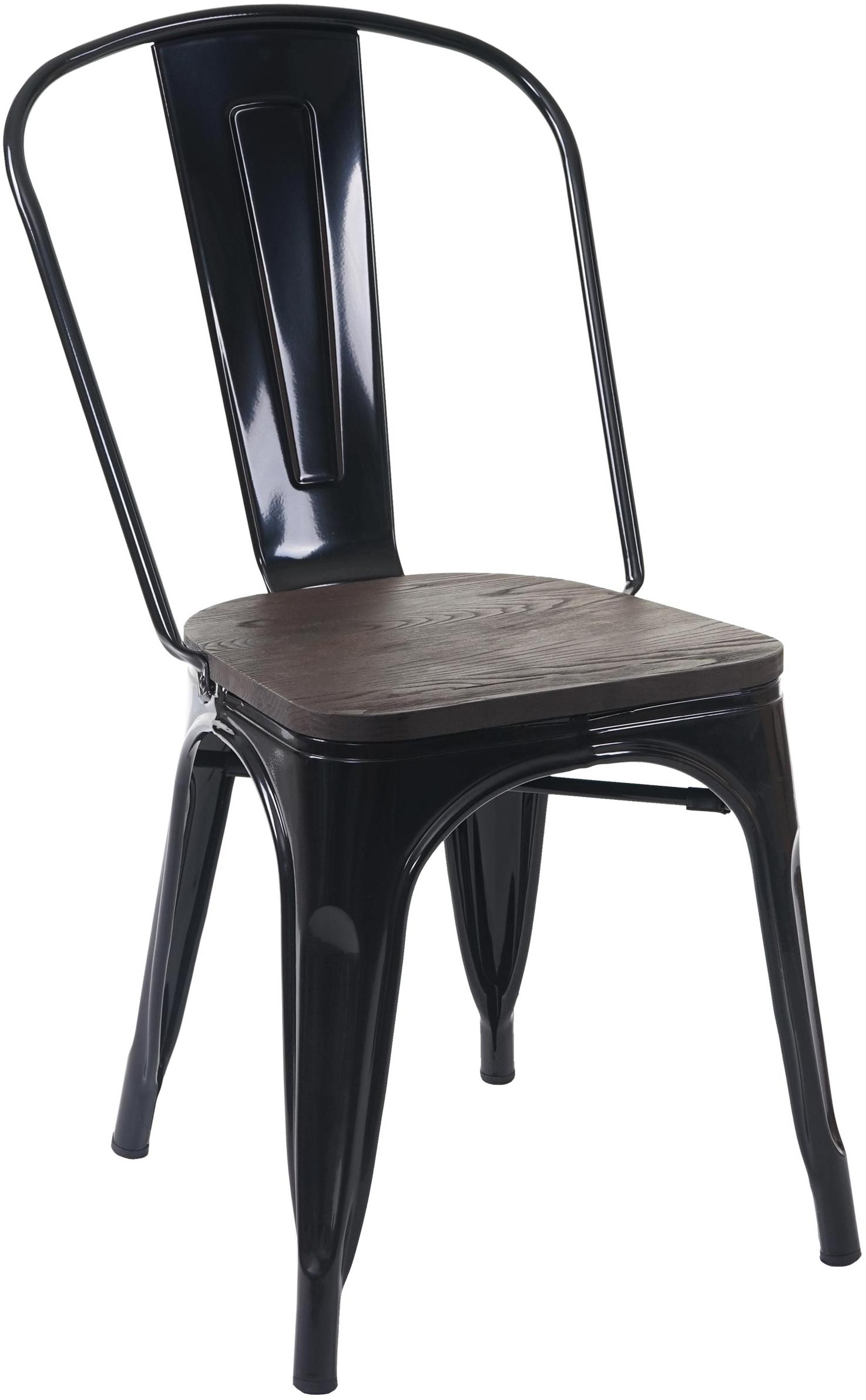 Stuhl HWC-A73 inkl. Holz-SitzflächeBistrostuhl Stapelstuhl, Metall Industriedesign stapelbar ~ schwarz