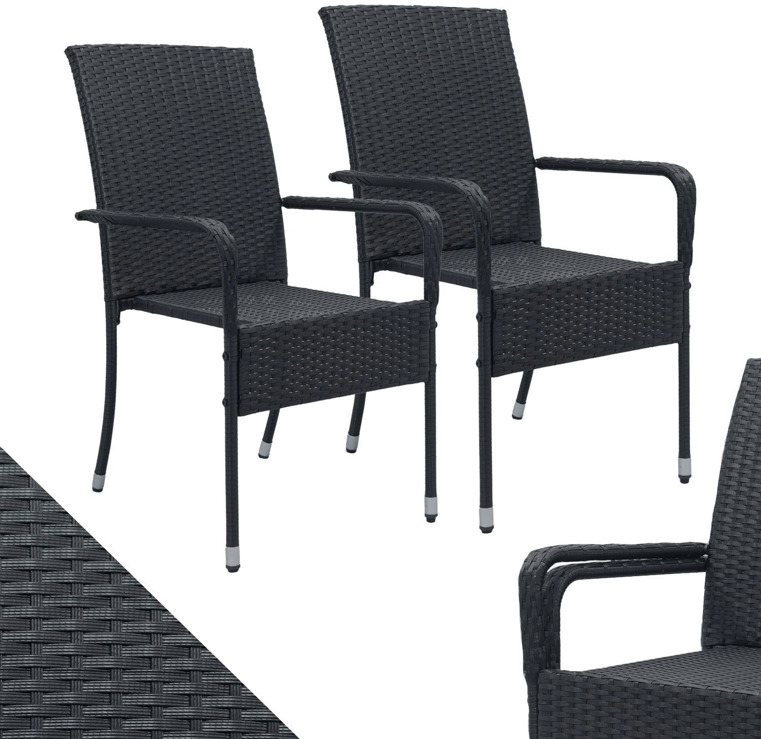 | Name | Juskys Polyrattan Gartenstühle Yoro 2er Set - mit Armlehnen & Rückenlehne - 2 Stühle stapelbar - Rattan Stuhl Garten - Stapelstuhl Schwarz |