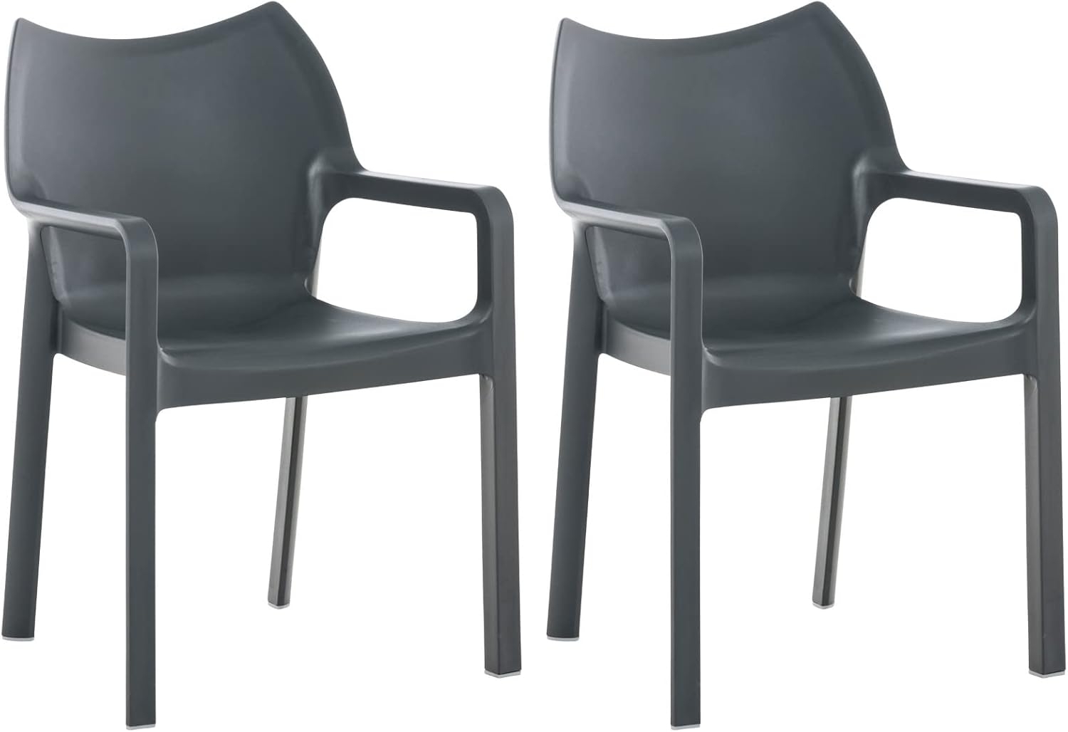 CLP 2er Set Stapelstuhl DIVA Kunststoff-Gartenstuhl mit Armlehnen,dunkelgrau
