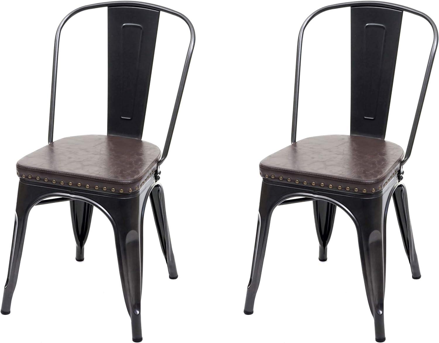 Black Deal in Stapelstühle2er-Set Esszimmerstuhl HWC-H10eKüchenstuhl Stuhl Chesterfield Metall Kunstleder Industrial Gastronomie ~ schwarz-braun