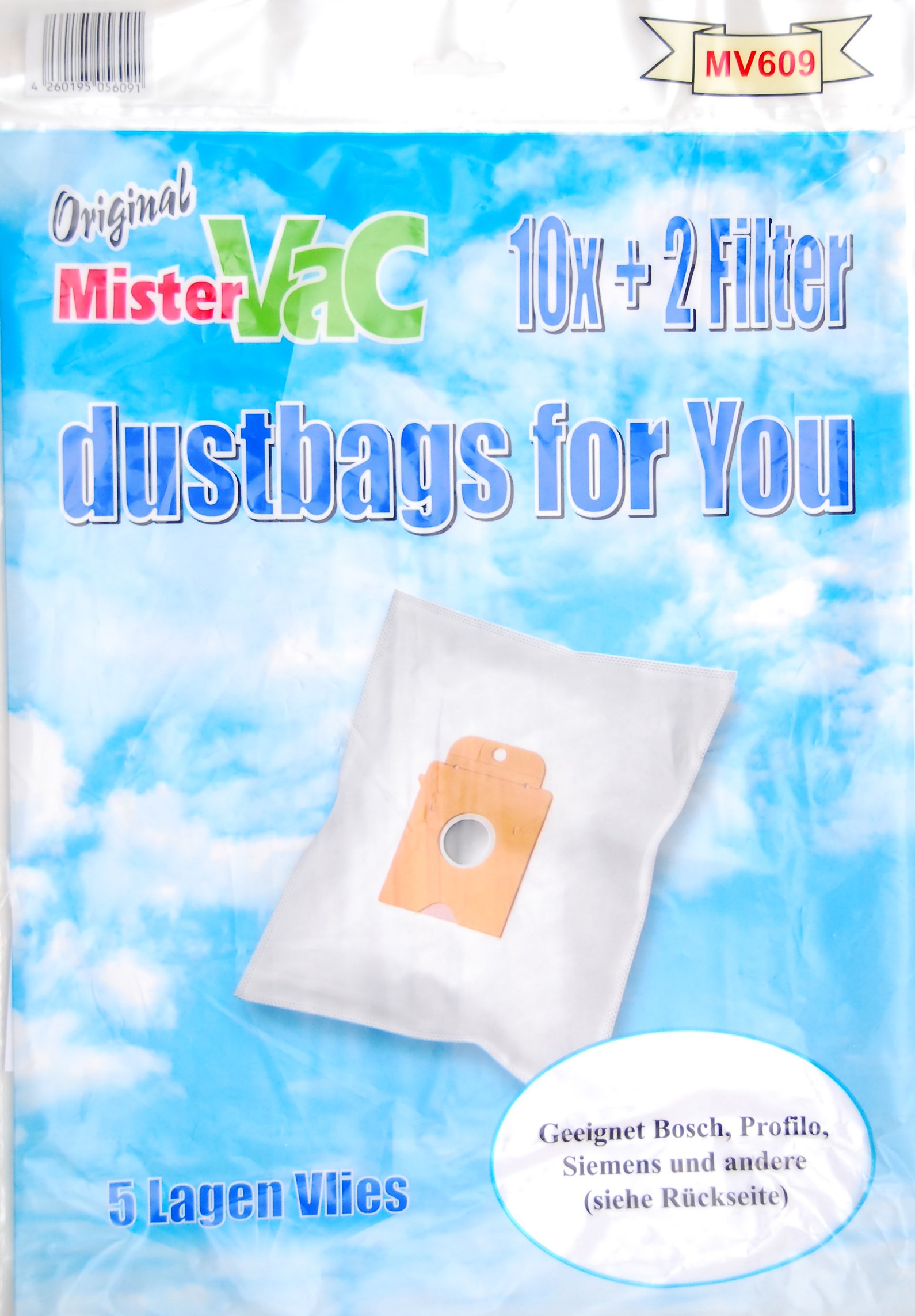 in Staubsauger-Zubehörmistervac MV 609 - Staubsaugerbeutel Vlies 5-lagig - Vorteilspack 30 Tüten + 6 Filter mit Vierer Düsenset - für Bosch und Siemens BIG BAG 3 L