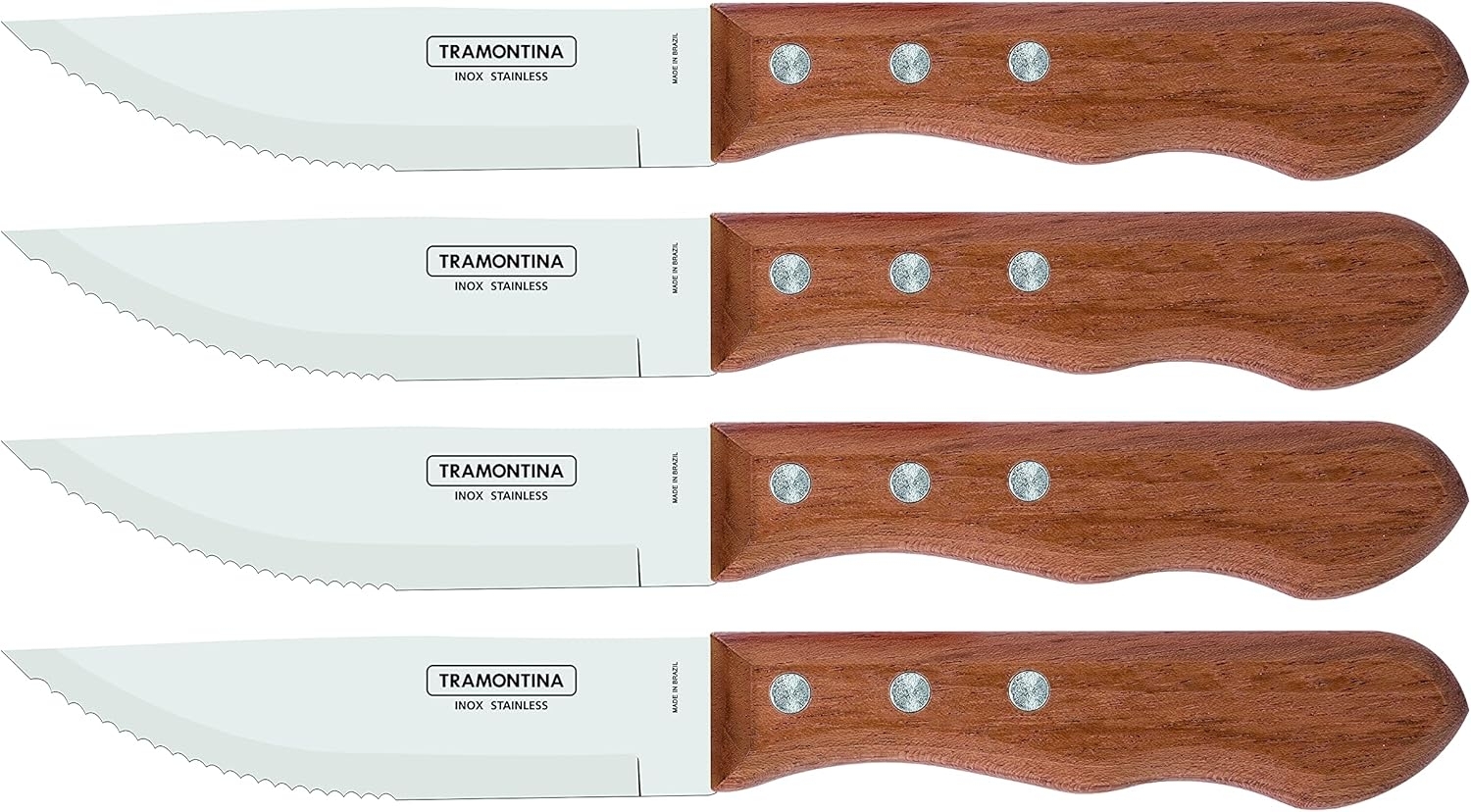 Tramontina Dynamic Steakmesser Jumbo4-teiliges Set, rostfreier Edelstahl, Holzgriff, 4 Steakmesser
