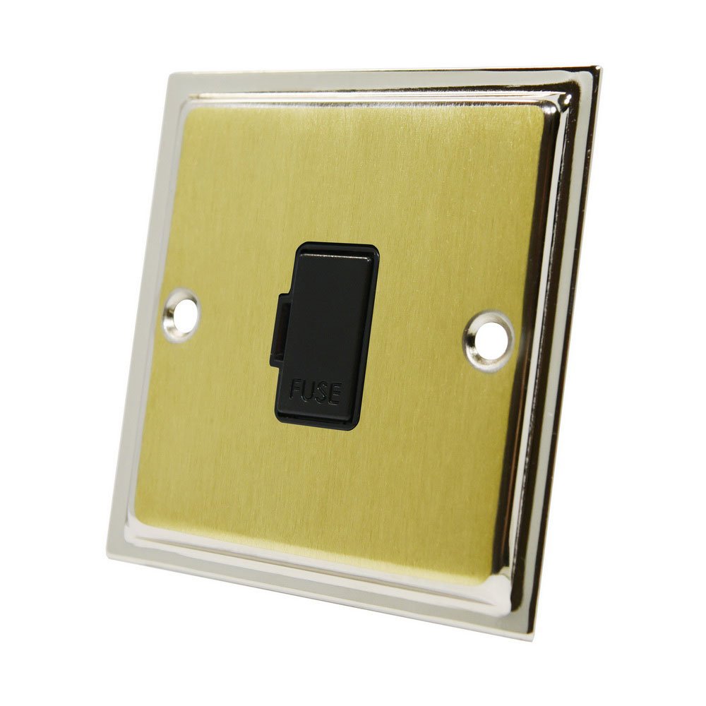 Slimline Duo Satin Messing poliertchrom, ungeschaltet miteinander verschmolzen Sporn Schwarz einfügen – 13 Amp Fused Anschluss Einheit