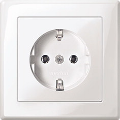 - Die Merten MEG2301-1519 SCHUKO-Steckdose hat eine matte Oberfläche und ist in der Farbe polarweiß gehalten.