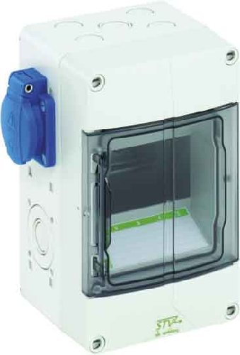 - Die Steckdosenkombination hat eine Schutzart von IP44, was sie gegen Spritzwasser schützt.