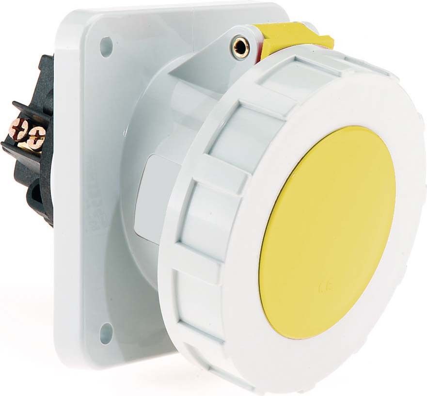 - Die BALS Anbausteckdose ist geneigt und hat eine Nennstromstärke von 63A mit 5 Polen (3P+N+PE) bei 110V.