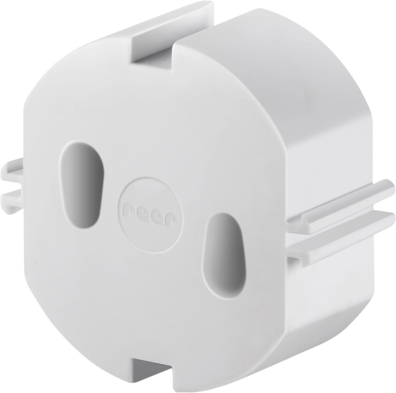 Der reer Steckdosenschutz bietet zuverlässigen Schutz vor neugierigen Kinderhänden. Die Steckdosenkappen verschließen Steckdosen sicher und können nur mit einem Stecker entfernt werden. Die Montage erfolgt einfach und schnell, ohne Schrauben oder Kleben. Hergestellt aus schlagfestem und extrem hitzebeständigem Spezial-Kunststoff, passen die Kappen in alle 230 V Schutzkontakt-Steckdosen und sind jederzeit wiederverwendbar. Ideal für den flexiblen Einsatz in Ferienwohnungen, Mietwohnungen und Hotels. **Highlights** - Ideale Passform: für alle Schutzkontakt-Steckdosen - Fester Halt: verschließt Steckdosen sicher und zuverlässig - Kindersicher: Entfernen nur mit Hilfe eines Steckers möglich - Einfache schnelle Montage: ohne Kleben und Schrauben - Jederzeit wiederverwendbar: ideal für Mietwohnungen & unterwegs **Produkteigenschaften** - Farbe: weiß - Material: schlagfester, extrem hitzebeständiger Spezial-Kunststoff - Passend für alle 230 V Schutzkontakt-Steckdosen - SLG Bauart geprüft **Lieferumfang** - 5 Stück reer Steckdosenschutz, weiß