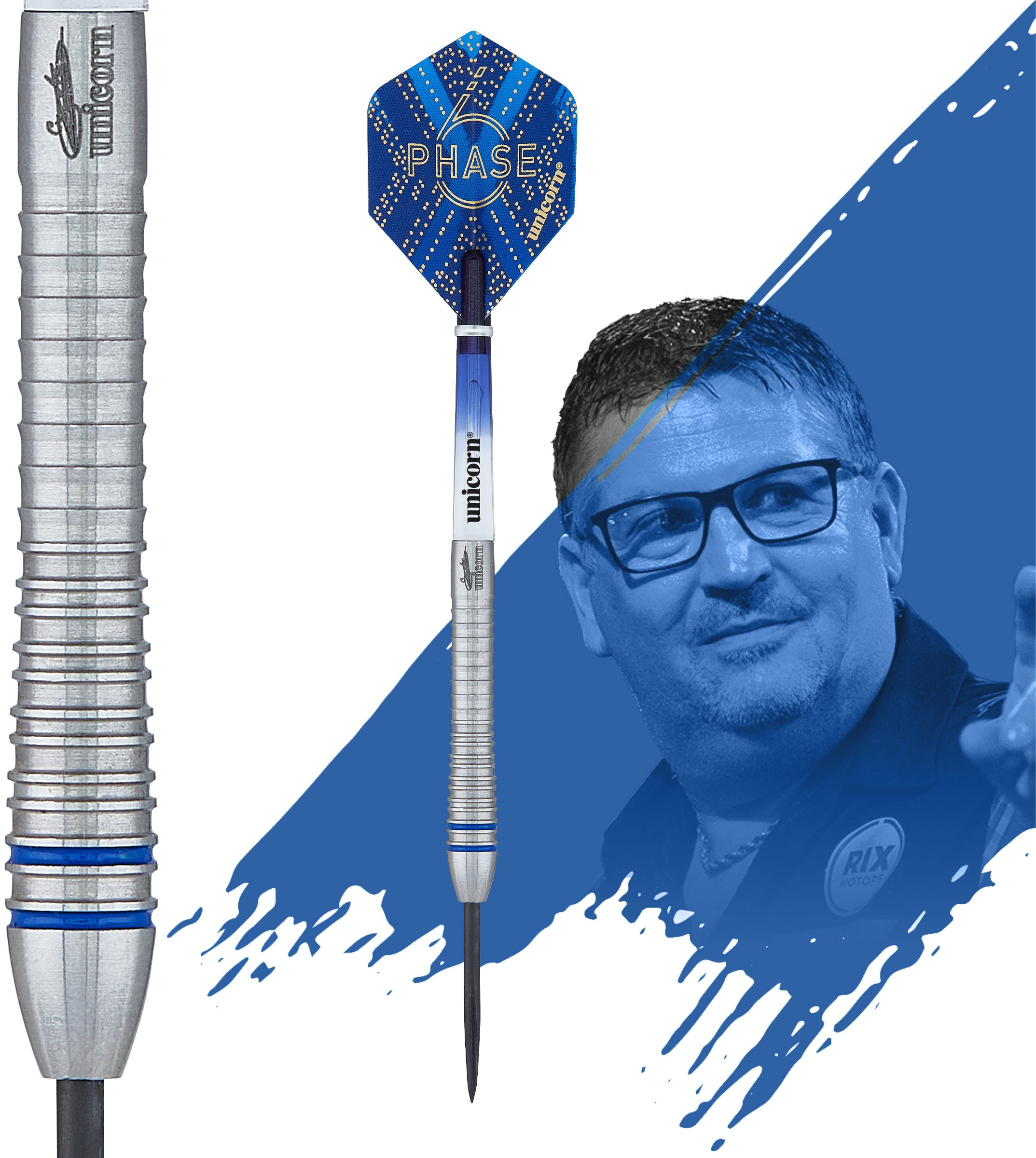 - Die Unicorn Phase 6 World Champion Gary Anderson Steel Dart Presentation Box enthält Darts mit einem Gewicht von 21 Gramm