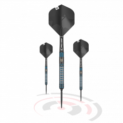 Target Adrian Lewis Black Edition Swiss Point Steeldartsmit einem Tungsten Anteil von 90 %. In enger Zusammenarbeit mit Adrian entstand diese Black Edition der Darts die Jackpot aktuell spielt. Mit einem schwarz beschichteten Barrel präzisen Fräsungen und blauen Highlights wird dieses Set zum echten Hingucker. Bei diesem Dartset ist das Target Swiss Point System verbaut mit dem die Dartspitzen mit dem beiliegenden Tool in Sekundenschnelle gewechselt werden können. Eine strategisch ausgelegte Nut stellt bei einem Bruch der Spitze sicher das der im Barrel verbliebene Rest einfach entfert werden kann um Platz für eine neue Spitze zu machen. Ein ausgeklügeltes Verriegelungssystem mit Kegel und Gewindetechnik sorgt dafür dass sich die Spitzen während des Spiels nicht lösen. Swiss Point Darts sind nur mit Target Swiss Point Spitzen kombinierbar. Bei uns findet ihr ein großes Angebot an Wechselspitzen Das Set kommt mit 26 mm Swiss Point Wechselspitzen schwarzen Target Pro Grip Shafts (Short) Jackpot Flights und einem Swiss Point Tool für den schnellen Spitzenwechsel. Abmessungen Länge 22 g 5100 mm 630 mm 24 g 5100 mm 650 mm 26 g 5100 mm 670 mm