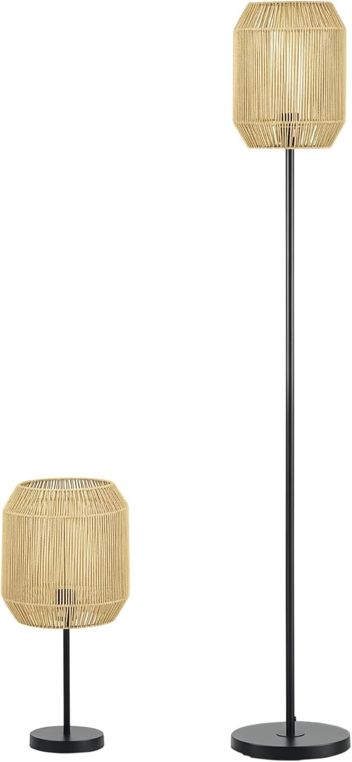 Holen Sie sich mit dem HOMCOM Stehlampe 2er-Stehlampenset eine moderne Beleuchtung in Ihr Zuhause. Das Set besteht aus einer eleganten Stehleuchte und einer praktischen Tischleuchte, die durch handgeflochtene Lampenschirme und ein schlichtes Gestell bestechen. Ideal für Wohnzimmer und Schlafzimmer, sorgt es für eine einladende Atmosphäre. Die einfache Montage und der Fußschalter bieten zusätzlichen Komfort. **Highlights** - 2er-Stehlampen-Set mit Stehleuchte und Tischleuchte - Handgeflochtene Lampenschirme für einen modernen Look - Fußschalter für bequemes Ein- und Ausschalten - Runder Stahlsockel für stabilen Stand - Geeignet für verschiedene Glühbirnen (nicht enthalten) **Produkteigenschaften** - Farbe: Schwarz, Natur - Material: Metall, Papier Schnur - Maße Stehlampe (Ø x H): 26x158 cm - Maße Tischleuchte (Ø x H): 23x55 cm - Stehlampenschirm Größe (Ø x H): 26x30,5 cm - Tischleuchte Lampenschirm Größe (Ø x H): 23x30 cm - Stehlampe Basis Größe (Ø x H): 25x2,5 cm - Tischlampe Basis Größe (Ø x H): 15x2,7 cm - Kabellänge: 1,5 m - Sockel: E27 (Glühbirne nicht enthalten) - Leistung der Glühbirne: 40 W - Spannung: 220-240 V / 50 Hz **Lieferumfang** - 1 x Stehlampe - 1 x Tischleuchte - 1 x Anleitung
