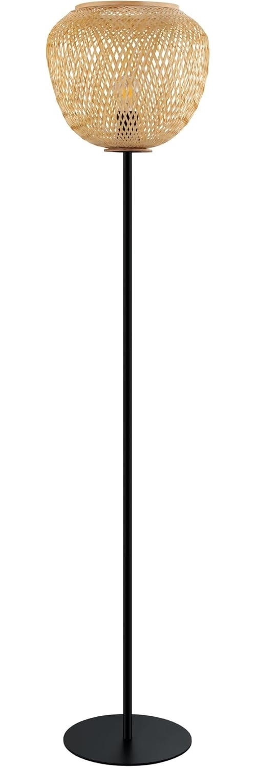 Holen Sie sich mit der EGLO 43264 NATURE Stehleuchte DEMBLEBY ein Stück Natur in Ihr Zuhause. Diese stilvolle Stehleuchte aus schwarzem Stahl und einem Lampenschirm aus naturfarbenem Holzgeflecht sorgt für eine gemütliche Atmosphäre. Der Fußtrittschalter ermöglicht ein bequemes Ein- und Ausschalten. Ideal für Wohnzimmer, Schlafzimmer oder Esszimmer, fügt sich die Leuchte harmonisch in verschiedene Einrichtungsstile ein. **Highlights** - Trittschalter zum bequemen Ein- und Ausschalten - Ideal für Wohnzimmer und Schlafzimmer - Modernes Natur / Boho-Design - Spannender Material-Mix aus Metall und Rattan - Freie Sicht auf das Leuchtmittel **Produkteigenschaften** - Maße (H x Ø): 150 cm x 32 cm - Sockeldurchmesser: 27,5 cm - Gewicht: 3,3 kg - Leuchtmitteltyp/Fassung: E27 - Maximale Leistung: 1 x 40 W - Schutzart: IP20 - Dimmbar: nein - Gehäusematerial: Stahl - Gehäusefarbe: schwarz - Schirmmaterial: Holz - Schirmfarbe: natur **Lieferumfang** - Stehleuchte DEMBLEBY - Leuchtmittel nicht enthalten