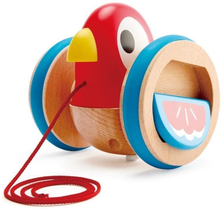 - Das Vögelchen wackelt und schlägt beim Ziehen mit den Flügeln, was für zusätzlichen Spielspaß sorgt.