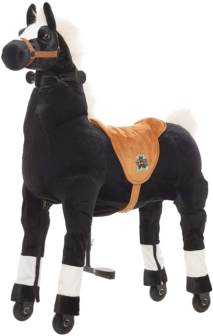 - Es verfügt über einen weichen Plüschkörper und ein innovatives Antriebssystem mit Lenkung, Haltegriffen und Fuß-Stützen.