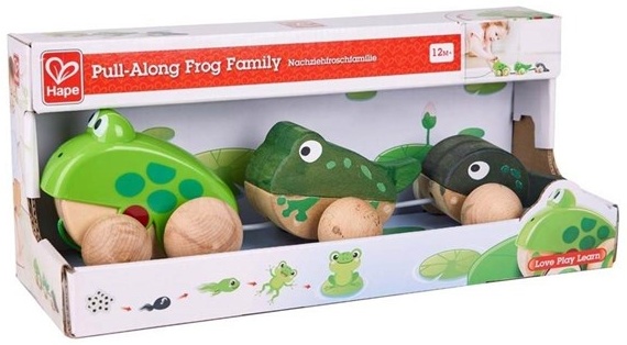 - Die Nachziehbare Frosch-Familie besteht aus einem großen Frosch, einem Fröschlein und einer kleinen Kaulquappe.