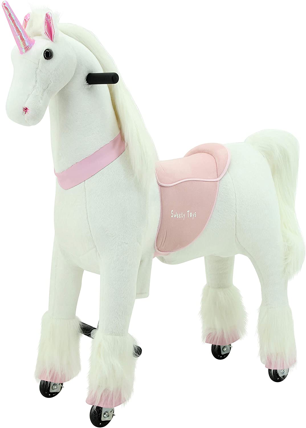 Sweety Toys Plüsch 7264 Reittier groß Einhorn auf Rollen für 4 bis 9 Jahre-Riding AnimalWeiss