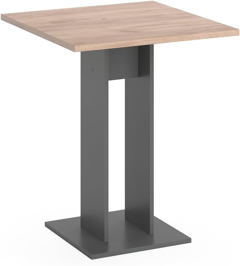 | Beschreibung | Der Esstisch Repose in Anthrazit ist die ideale Wahl für minimalistische Wohnungen und kleine Küchen. Mit seinen kompakten Abmessungen von 65 x 78 x 65 cm (BxHxT) und dem stabilen Fuß bietet er sowohl Eleganz als auch Funktionalität. Hergestellt aus pflegeleichter Spanplatte mit einer Melaminharzbeschichtung, sorgt er für ein angenehmes Esserlebnis. **Highlights** - Ergonomisches Design für bequeme Sitzposition - Hoher, stabiler Fuß für zusätzliche Eleganz - Universelle Form, passend für jeden Raum - Pflegeleichte Oberfläche durch Melaminharzbeschichtung - Leichtes Gewicht von 12,65 kg für einfache Handhabung **Produkteigenschaften** - Farbe: Anthrazit - Abmessungen: 65 x 78 x 65 cm (BxHxT) - Material: Spanplatte, 16 mm - Artikelgewicht: 12,65 kg - Artikelgewicht inkl. Verpackung: 13 kg **Lieferumfang** - Esstisch - Montageanleitung - Montagematerial - Dekoration nicht enthalten |