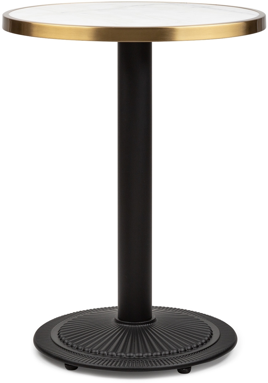 in Stehtischeblumfeldt Patras Jewel Bistro-Tisch - Gartentisch im Jugendstilweiße 57,5 cm Ø Marmortischplatte, 75 cm Höhe, für drinnen und draußen, witterungsbeständig, runder gusseiserner Standfuß, schwarz