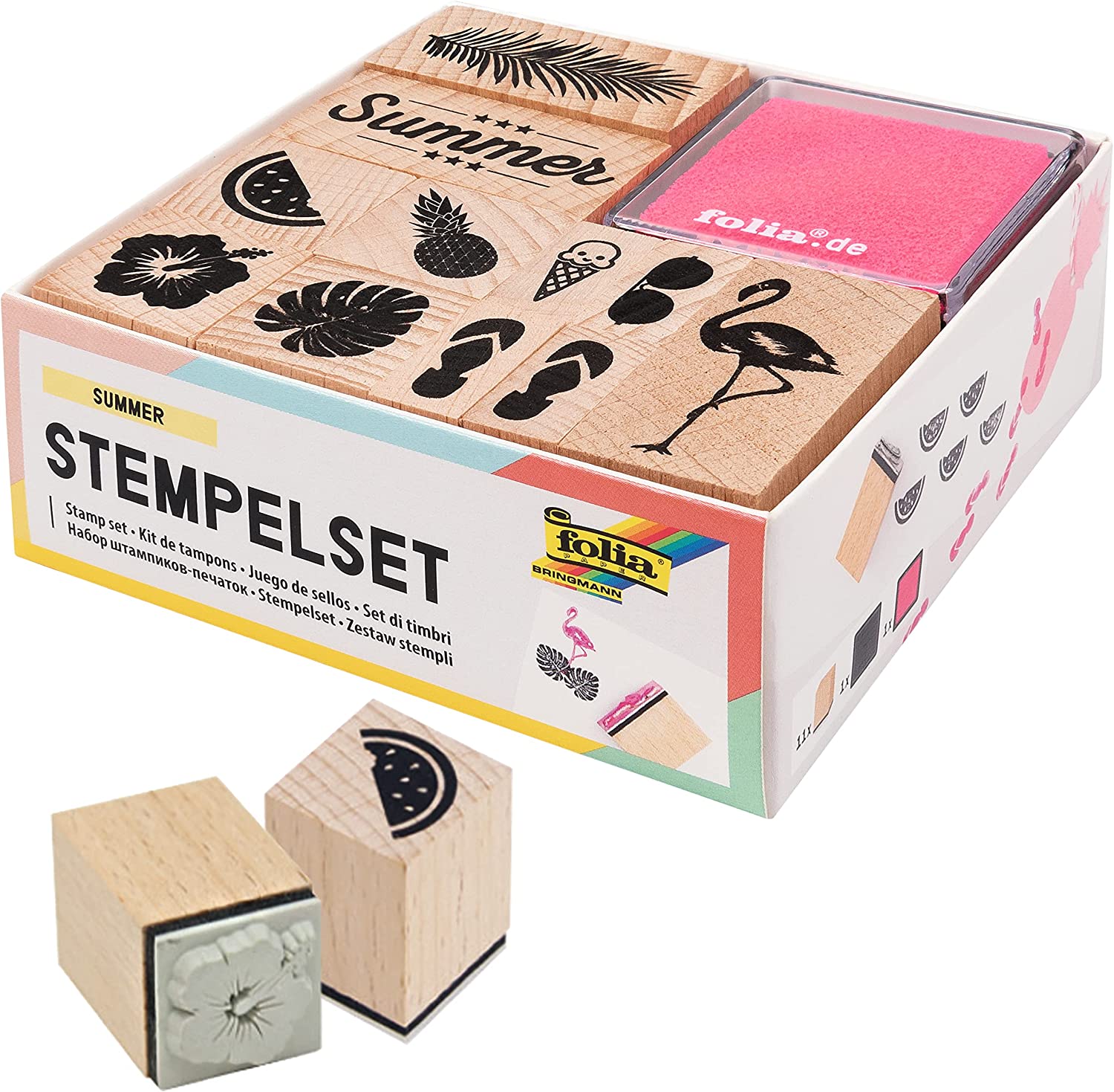 | Name | folia 31101 - Holzstempelset Summer, inklusive 11 Holzstempel und 2 Stempelkissen - ideal zum Verzieren von Karten, Freundschaftsbüchern, für Lettering und Scrapbooking |