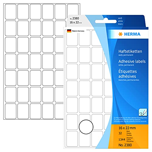 in StickerHERMA 2380 Etiketten weiß32 Blatt, 16 x 22 mm, 42 pro Bogen, 1344 Aufkleber, selbstklebend, Vielzweck Klebeetiketten zum Beschriften, Universal Haftetiketten aus Papier, blanko