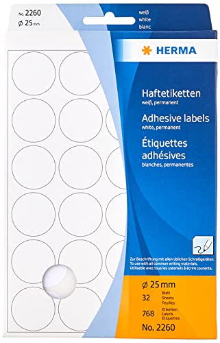 in StickerHERMA 2260 Punktaufkleber Klebepunkte weiß32 Blatt, Ø 25 mm, 24 pro Bogen, 768 Aufkleber, selbstklebend, Markierungspunkte zum Beschriften, runde Farbpunkte aus Papier, blanko