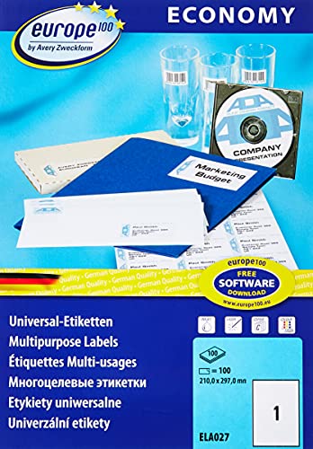- Die europe100 ELA027 Universal Etiketten bieten ein hervorragendes Preis-/Leistungsverhältnis