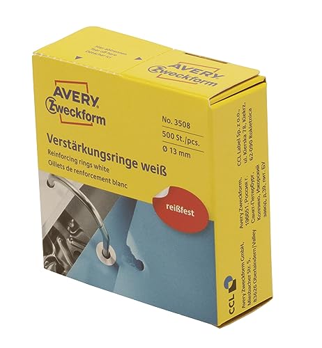 in StickerAVERY Zweckform 3508 Lochverstärker selbstklebend 500 Stück (Ø13mm, Lochverstärkungsringe auf Rolle, permanent haftende Ringverstärker, Ringlochverstärker fürs Abheften, reißfeste Folie) weiß