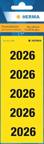 in StickerHERMA 1686 Jahreszahlen Aufkleber 2026selbstklebende Textetiketten in Gelb, 100 Stück, 60 x 26 mm, blickdicht, matt, FSC-zertifiziert