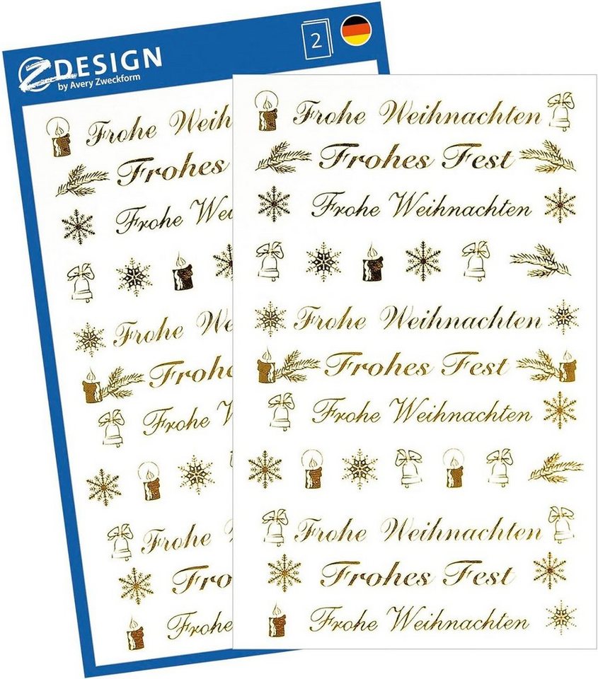 - Die Avery Zweckform ZDesign Weihnachts-Sticker "Frohes Fest" sind hochwertige Deko-Aufkleber mit edler Goldprägung, perfekt für festliche Dekorationen