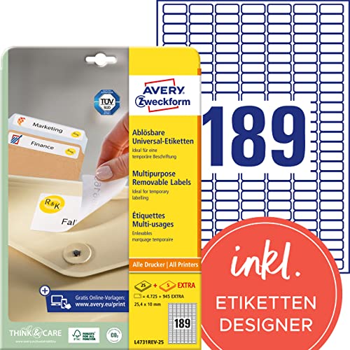 in StickerAVERY Zweckform L4731REV-25 Universal-Etiketten5.670 wieder ablösbare Aufkleber, 25,4x10mm, 30 Blatt, weiß