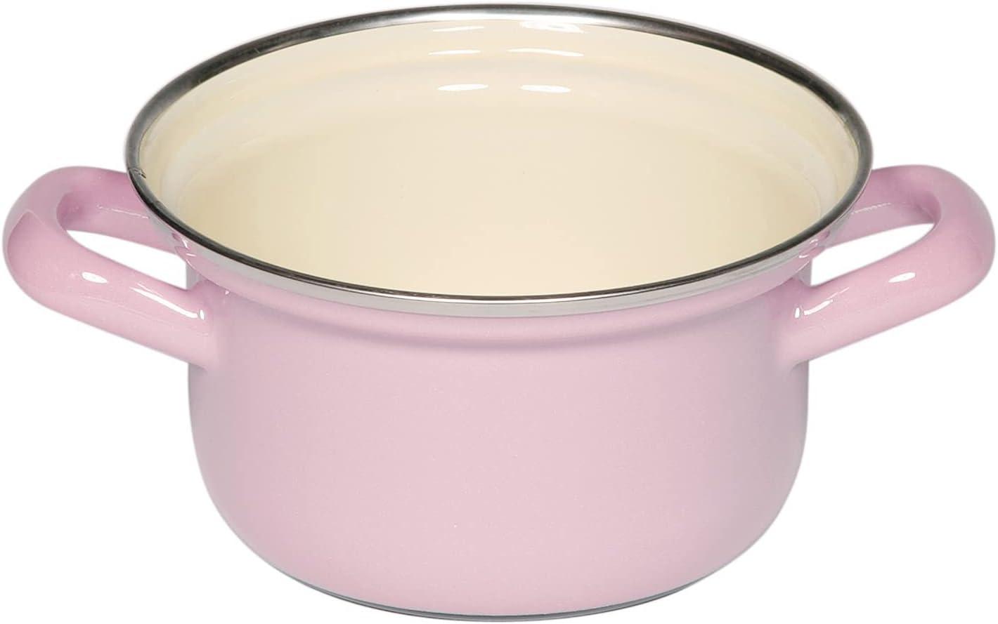 Die Riess Kasserolle mit Chromrand in Rosa hat einen Durchmesser von 12 cm und gehört zur Bunt Pastell Serie. Sie überzeugt durch ihr klassisches Design, zwei Emaillegriffe und eine halbhohe Seitenwand. Der Werkstoff Emaille aus Eisen und Glas ermöglicht die Nutzung auf allen Herdarten. Die porenlose Oberfläche sorgt für Hygiene und einfache Reinigung, während die schnelle Wärmeleitung energiesparendes Kochen gewährleistet. **Highlights** - Vielseitig einsetzbar auf allen Herdarten - Energiesparendes Kochen durch schnelle Wärmeleitung - Hygienisch, aromaneutral und bakterienhemmend - Leicht zu reinigen und langlebig - CO2-neutral hergestellt in Österreich **Produkteigenschaften** - Robuster Chromrand - Inhalt: 0,50 L - Höhe: 7,3 cm - Schnitt- und kratzfest - Recyclebar **Lieferumfang** - 1x Riess Kasserolle mit Chromrand Rosa 12 cm