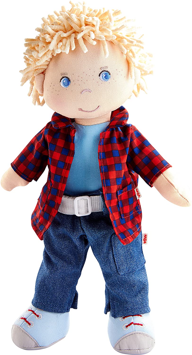 | Name | Haba 302843 Little Friends, Puppe Nick, Weich- und Stoffpuppe, mit Kleidung und Haaren, 30 cm, ab 1,5 Jahren |