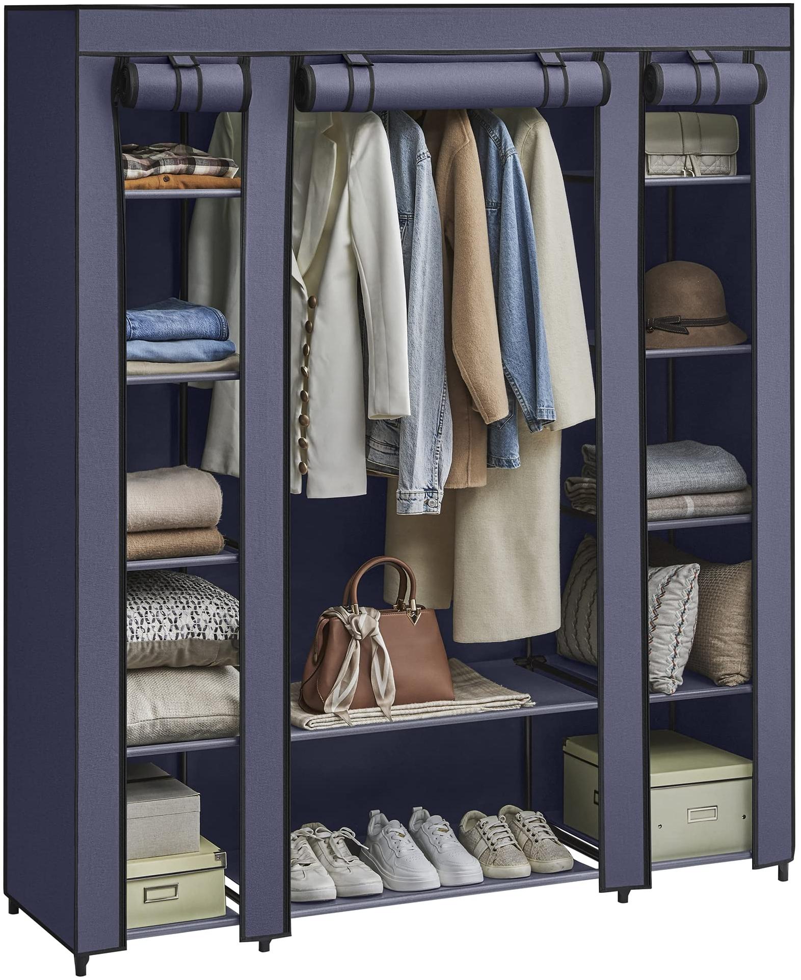 | Name | SONGMICS Kleiderschrank, Stoffschrank, mit Überzug aus Vliesstoff, Faltschrank mit Kleiderstange, 45 x 150 x 175 cm, 12 Ablagen, Metallrahmen, Schrank fürs Schlafzimmer, Marineblau LSF003I02 |