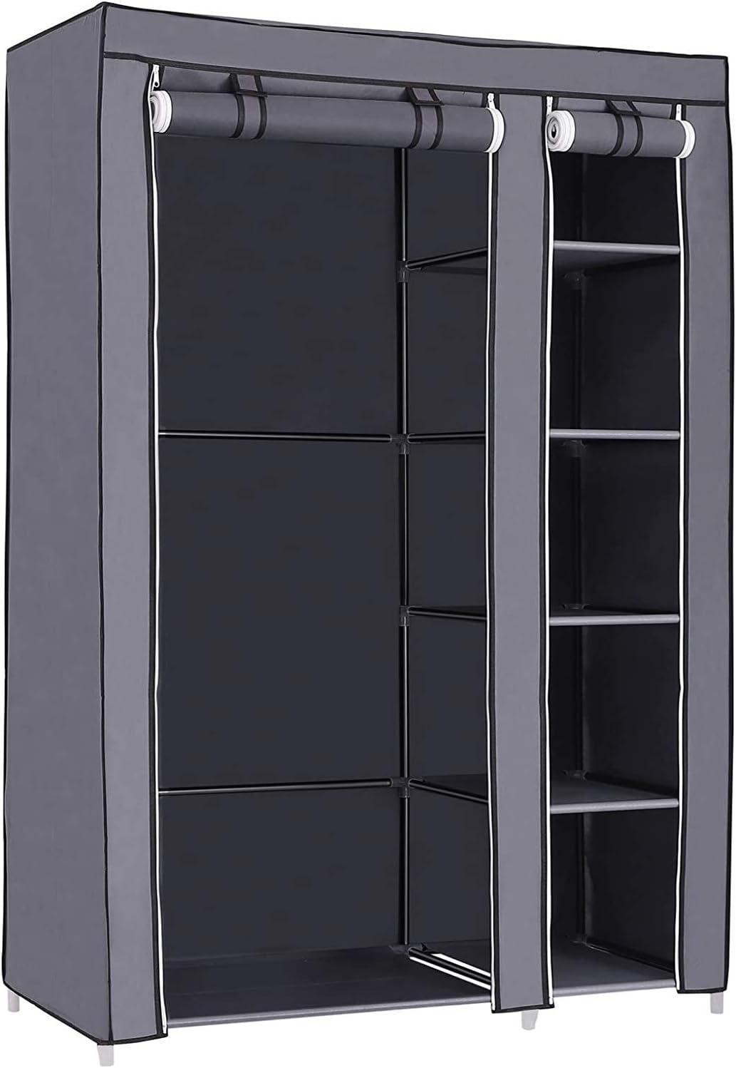 **Beschreibung:** Erfüllt seinen Zweck bestens - DIY Ausführung und platzsparend. Leicht aber dennoch stabil. Idealer Stauraum für Flur, Treppenhaus, Schlafzimmer, Kinderzimmer oder auch Keller, Dachboden und Abstellraum. Mit einer Kleiderstange können Sie Kleider, Gürtel und Krawatten daran hängen. Praktischer Überzug - Mit Klettverschlüssen wird der hochgerollte Türvorhang befestigt. Die Reißverschlüsse dienen zum einfachen Öffnen und Schließen der Tür. Sie schützen Ihre Kleidung vor Staub und Schmutz. Mit Bändern ausgestattet, so dass die Überhülle nicht hin und her rutschen kann. Große Belastbarkeit und viel Stauraum - Produktmaße: 110 x 175 x 45 cm (B x H x T). Der extragroße Faltschrank bietet viel Platz. Bei gleichmäßiger Gewichtsverteilung ist jedes Fach mit bis zu 3 kg und die Kleiderstange bis 15 kg belastbar. Hochwertige Stahlrohre, robuste Plastikverbinder - Mit glatter Oberfläche sind die Stahlrohre rostbeständig und verschleißfest. Aus hochwertigem PP sind die Plastikverbinder geruchlos, druckbeständig, hitzebeständig, robust und stabil. Wasserdichte Einlegeböden – Der Überzug und die Einlegeböden aus Vlies-Gewebe sind atmungsaktiv und feuchtigkeitsbeständig. Mit PP-Folie laminiert sind die Einlegeböden einfach zu entstauben und zu reinigen. Der schicke Faltschrank von Songmics ist die ideale Lösung für schnelle und perfekte Ordnung! Der Schrank besteht aus einem stabilen Gestell aus Stahlrohr und robustem Vlies-Gewebe. Er bietet staubfreie und saubere Lagerung der Bekleidung. Sehr platzsparend, passt somit in jede Ecke! Dieser extragroße Textilfaltschrank mit atmungsaktivem Gewebe bietet viel Platz für Ihre Kleidung, Schuhe usw. Er ist extrem leicht und ideal zum Transport geeignet. Der Schrank ist nicht nur praktisch zum Aufbewahren Ihrer Kleidungsstücke, sondern dient auch als Dekoration und schafft Mode und Trends. Er sorgt in Ihrer Wohnung für ein ordentliches, aufgeräumtes Ambiente! **Hinweise:** Das Produkt soll vor direkter Sonneneinstrahlung geschützt werden, ansonsten kann sich die Lebensdauer verkürzen. Bitte kühl und trocken lagern, um Schimmel zu verhindern. Beim Verbinden von den Eisenrohren und Plastik-Verbindungsstücken vermeiden Sie bitte das Eisenrohr mit Gewalt direkt nach innen in das Verbindungsstück zu drücken, sondern drehen Sie das Eisenrohr langsam in das Verbindungsstück rein. Stellen Sie bitte sicher, dass die Rohre bis zum Ende in das Verbindungsstück eingesetzt werden. Falls der Eingang der Plastik-Verbindungsstücke zu eng ist, versuchen Sie bitte die Plastik-Verbindungsstücke in warmes Wasser einzutauchen. Falls Sie beim Aufbau auf Probleme stoßen, kontaktieren Sie bitte unseren Kundenservice, wir helfen Ihnen gerne beim Lösen der Probleme, oder bieten Ihnen gerne die kostenlosen Ersatzteile an. **Produktdetails:** - Farbe: grau - Abmaße: 110 x 175 x 45 cm (B x H x T) - Überzug: Vlies-Gewebe (95 g/m²) - Tuchablage: Vlies-Gewebe (95 g/m²), laminiert - Eisenrohr (Ø 16 mm) - Verpackungsmaße: 75 x 33 x 10 cm - Gewicht: 4,54 kg **Lieferumfang:** - 1 x Faltschrank
