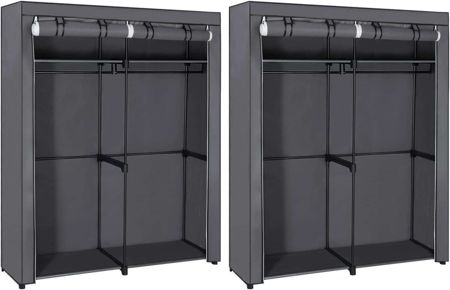 - **SO KANN DIE NÄCHSTE SHOPPINGTOUR KOMMEN!** Hängen Sie Ihre neu gekaufte Kleidung ordentlich auf die 2 Kleiderstangen und legen Sie Ihre Lieblingstaschen auf die Ablagen. Alles griffbereit in dieser Garderobe - so macht die Auswahl eines Outfits am Morgen wieder Spaß - **EIN KRÄFTIGES REGAL:** Jede Kleiderstange (Wandstärke 0,4 mm) kann ein Gewicht bis zu 20 kg aushalten; jede Stoffablage wird von 4 Metallrohren (Ø 16 mm) und robusten, beidseitig verwendbaren Kunststoffverbindungsstücken gestützt und ist mit bis zu 10 kg belastbar - **GEBEN SIE STAUB KEINE CHANCE:** Ihre Lieblingskleider müssen besser geschützt werden! Keine Sorge, SONGMICS hilft Ihnen dabei! Mit einem Reißverschluss und Klettverschlüssen ausgestattet, bietet der Stoffüberzug dieses Kleiderständers Ihrer Kleidung einen guten Schutz - **DIE MONTAGE? EIN KINDERSPIEL!** Alle Verbindungsstücke wurden in einer einheitlichen Größe gefertigt; hierdurch ersparen Sie sich das lästige Sortieren der Einzelteile. Sie müssen nur alle Rohre in die Verbindungsstücke stecken und schon steht das Regal. Dann können Sie Ihre neue Kleidung ordentlich aufgereiht präsentieren - **NOCH NICHT ZUFRIEDEN?** Unser Kundenservice steht Ihnen jederzeit zur Verfügung. Überlegen Sie also nicht lange und holen Sie sich Ihren neuen Kleiderschrank! Stellen Sie diesen Stoffschrank in Ihre Wohnung und bringen Sie Ihre vier Wände auf Vordermann. SONGMICS wird Sie nie im Stich lassen! **Diese Kleiderstangen sind ein wenig anders:** Um die Belastbarkeit der Kleiderstangen zu erhöhen, werden die Rohre und die Haken an beiden Enden durch Schrauben verstärkt, was für eine gute Beständigkeit gegen Vorformung sorgt, auch im Falle einer stetig wachsenden Kleidersammlung. **Hemden und Kleider ohne Falten:** Durch diesen faltbaren Stoffschrank müssen Sie nicht mehr in einem chaotischen Kleiderhaufen nach einem passenden Outfit suchen, sodass Sie viel Zeit und Mühe am Morgen sparen. Dieser Schrank ist mit 2 Kleiderstangen ausgestattet, an denen Sie die Kleidung für den nächsten Arbeitstag ordentlich sowie griffbereit aufhängen können. | Verstärkte MetallrohreDer Kleiderschrank von SONGMICS besteht aus hochwertigen Rohren aus Metall (Durchmesser 16 mm); dieses Material sorgt für eine gute Belastbarkeit und ist beständig gegen Verformungen. | Hochqualitative KunststoffverbindungsstückeAus PP-Kunststoff gefertigt, sind diese Verbindungsstücke robust, langlebig und beständig gegen hohe Temperaturen. Dank dieser praktischen Einzelteile ist dieser Schrank zudem einfach und schnell zu montieren. | WasserabweisendDie Ablagen bestehen aus hochwertigem Vliesstoff mit PP-Beschichtung und sind hierdurch wasserabweisend. Auch der Überzug des Schranks ist aus Vliesstoff gefertigt und kann daher einfach mit einem feuchten Tuch gereinigt werden. | **Produktdetails:** - Farbe: Grau - Material: Vliesstoff, Metallrohre, Kunststoffverbindungsstücke - Größe: 140 x 43 x 174 cm (L x B x H) - Gewicht: 5,4 kg - Max. Belastbarkeit der Ablage: 10 kg - Max. Belastbarkeit der Kleiderstange: 20 kg - Max. Belastbarkeit des ganzen Regals: 80 kg **Lieferumfang:** - 1 x Stoffschrank - 1 x Anleitung (DE, EN, FR, ES, IT) **SONGMICS Hinweise:** - Die max. Belastbarkeit im Text bezieht sich auf das statische Maximalgewicht.