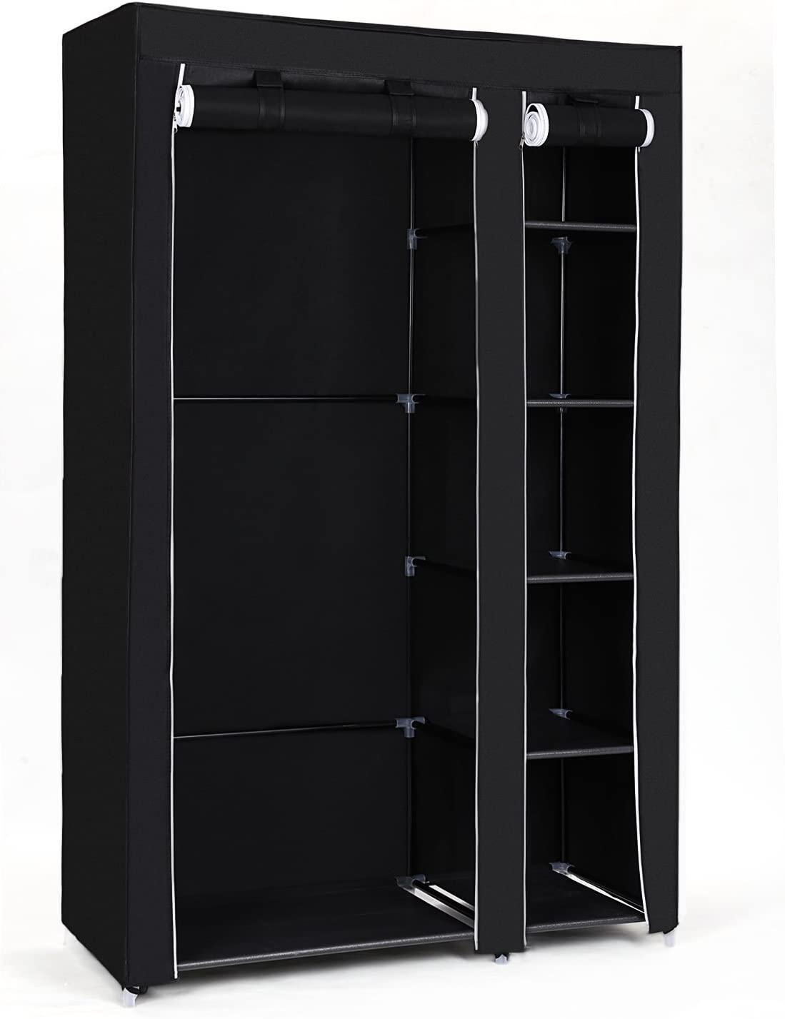 Songmics Stoffschrank Kleiderschrank, Faltschrank, Campingschrank mit Kleiderstange, 110 x 175 x 45 cm, schwarz LSF007