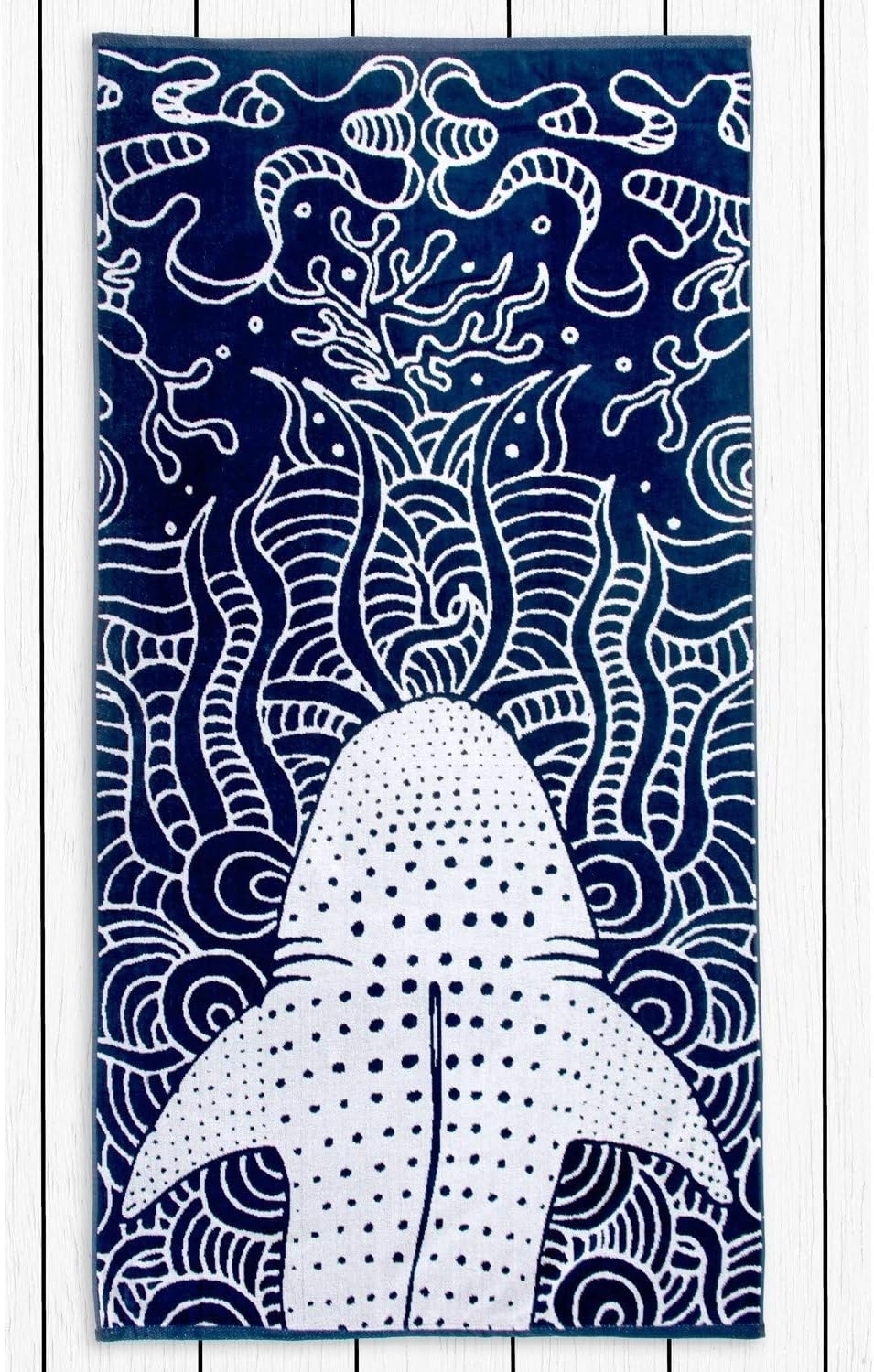 Das DecoKing Strandtuch in Marineblau und Weiß mit Haifischmotiv ist ein großzügiges Badetuch mit den Maßen 90 x 180 cm. Hergestellt aus hochwertiger Baumwolle in Frottee- und Velours-Qualität, bietet es ein besonders weiches und saugfähiges Hauterlebnis. Ideal für den Strand oder das Schwimmbad, ist es leicht und platzsparend, perfekt für Reisende. Zudem ist das Tuch bei 30 Grad waschbar und sorgt so für langanhaltende Frische. **Highlights** - Vielseitige Nutzung dank Frottee und Velours - Leicht und platzsparend für Reisende - Besonders weich, saugfähig und strapazierfähig - Großzügige Größe von 90 x 180 cm - Waschbar bei 30 Grad für langjährige Nutzung **Produkteigenschaften** - Maße: 90 x 180 cm - Material: Baumwolle (Frottee und Velours) - Farbe: Marineblau, Weiß - Besonders weich, saugfähig und strapazierfähig - Waschbar bei 30 Grad