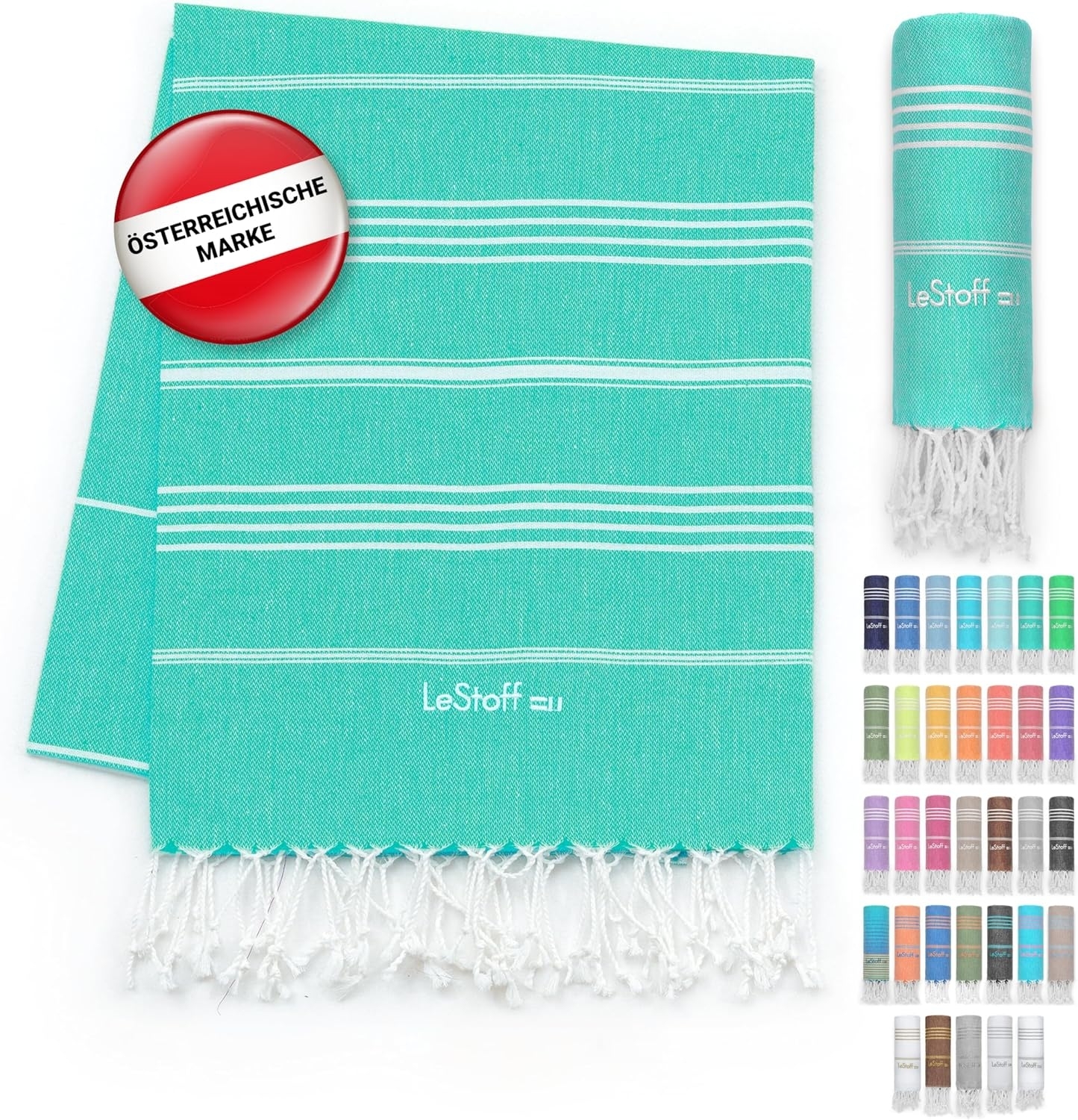 | Name | LeStoff das traditionelle Hamamtuch Strandtuch Badetuch Saunatuch Duschtuch Spa Sport Yoga Reisen 100% Bio-Baumwolle. Nachhaltig, natürlich, weich und vorgewaschen. (95x180 cm, Turquoise) |