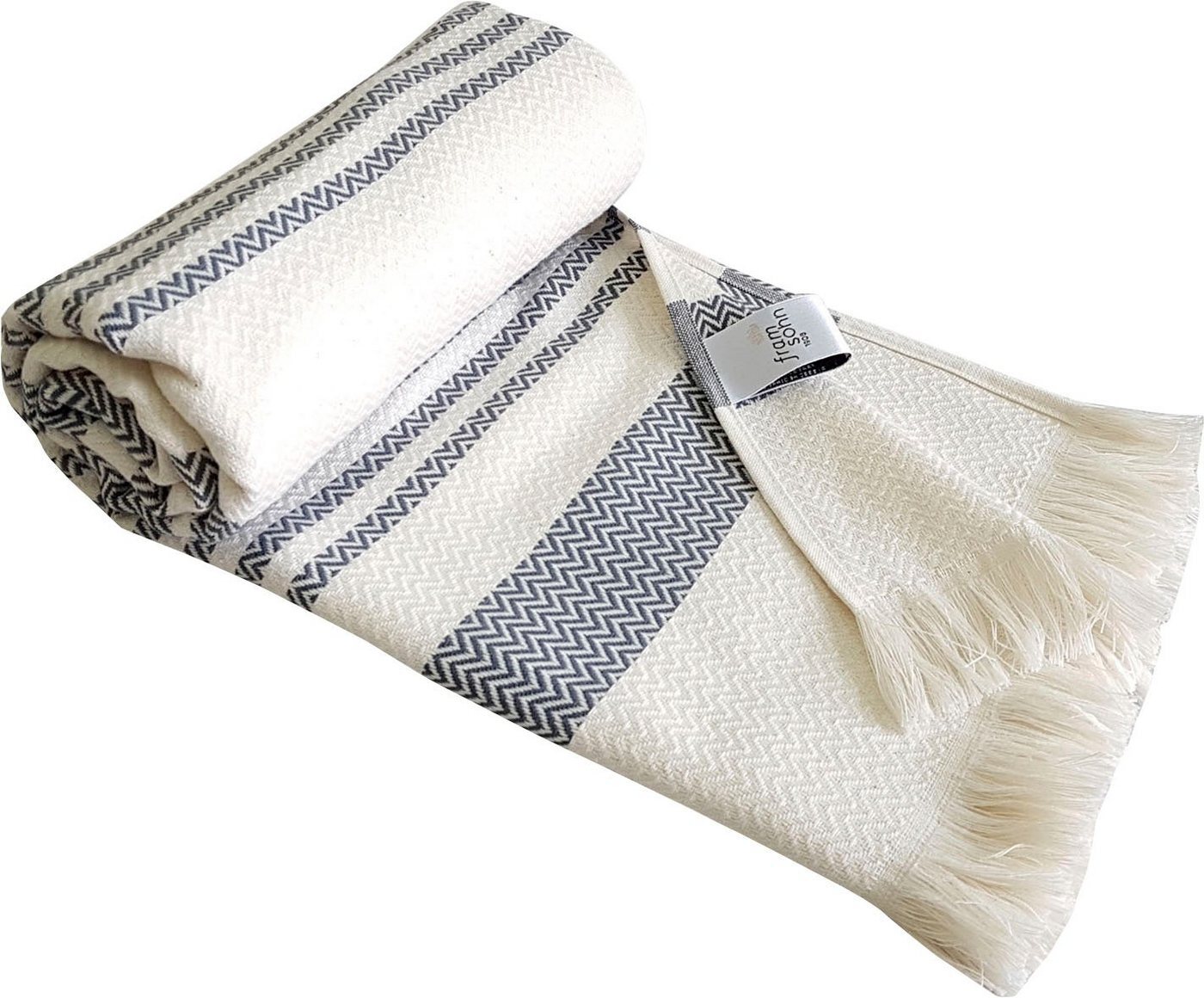 in Strandtücherframsohn frottier Hamamtuch Boho Living - Zick Zack MusterHamam Frottier (Packung, 1-St), 100x180, zick zack & mit Fransen, ideal als Strandtuch, Sauna, Reise
