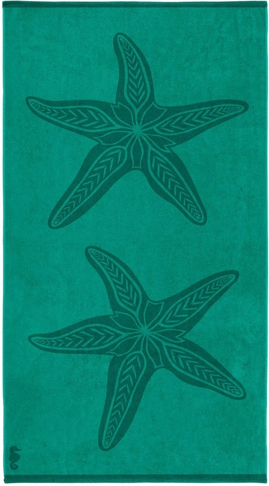 Das Seahorse Strandtuch Salty in sattem Grün mit zwei abgebildeten Seesternen ist der ideale Begleiter für Ihren Strand- oder Pooltag. Hergestellt aus 100 % ägyptischer Baumwolle, bietet es eine hochwertige Velours-Qualität für ein angenehmes Liegegefühl. Dank der schnelltrocknenden Eigenschaften bleibt das Tuch stets einsatzbereit und behält seine leuchtenden Farben. **Highlights** - Hochwertige Velours-Qualität für ein weiches Liegegefühl - Hergestellt aus 100 % ägyptischer Baumwolle - Schnelltrocknend für schnellen Einsatz - Farb- und formbeständig durch gefärbtes Baumwollgarn - Attraktives Design mit zwei Seesternen **Produkteigenschaften** - Farbe: sattes Grün - Abgebildete Motive: zwei Seesterne - Material: 100 % ägyptische Baumwolle - Eigenschaften: schnelltrocknend, weich, farb- und formbeständig