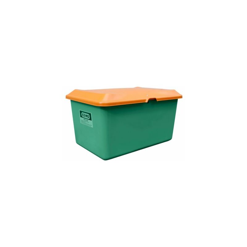 - Der Cemo Streugutbehälter aus GfK hat ein Volumen von 400 Litern und ist aus langlebigem, stabilen und rostfreien glasfaserverstärktem Kunststoff gefertigt.