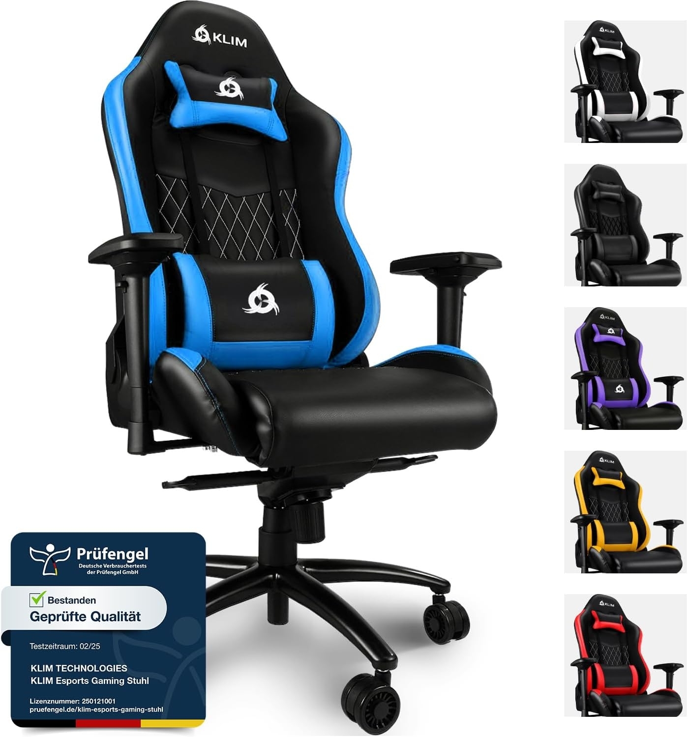 | Name | KLIM Esports Gaming Stuhl + Mit Lenden- und Nackenstütze + Verstellbar Gaming Sessel + Ergonomisch PC Stuhl + Kunstleder und Premium-Materialien + Blau Gamer Stuhl 2022 Version Gaming Chair |