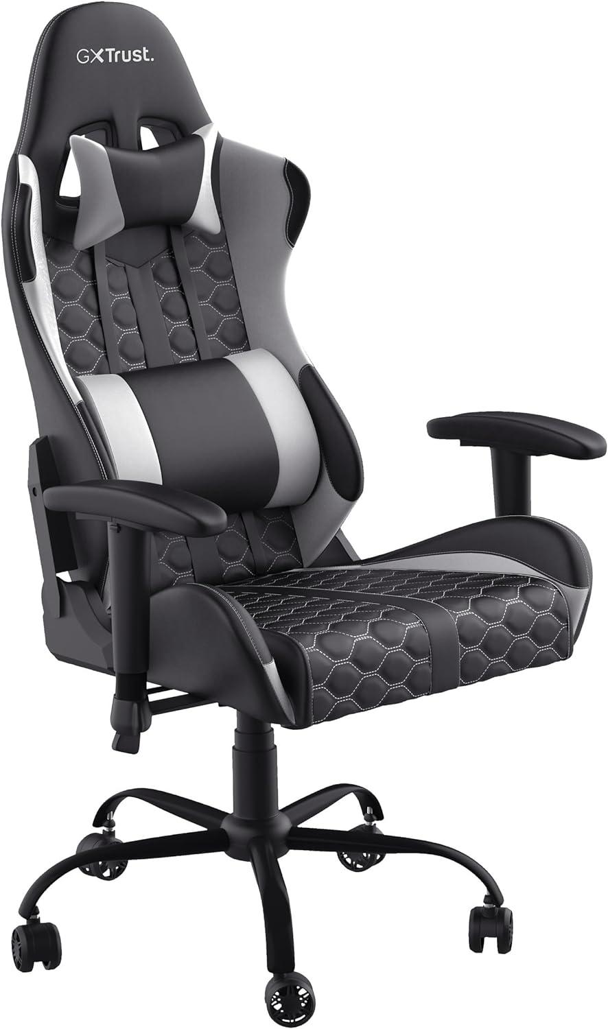 Der Trust GXT 708W Resto Gaming Stuhl vereint stilvolles Design mit hohem Komfort, ideal für stundenlanges Gaming. Er ist vollständig einstellbar und bietet zwei abnehmbare Kissen für optimale Unterstützung. Der 360 Grad drehbare Sitz und die höhenverstellbaren Armlehnen sorgen für individuelle Anpassung. Mit einer Belastbarkeit von bis zu 150 kg und einer optimalen Stabilität für Körpergrößen von 155 bis 195 cm ist dieser Stuhl sowohl langlebig als auch funktional. **Highlights** - Vollständig einstellbar für individuellen Komfort - Abnehmbare und einstellbare Kissen für optimale Unterstützung - 360 Grad drehbarer Sitz für maximale Bewegungsfreiheit - Hochwertige Materialien und robuste Konstruktion für Langlebigkeit - Attraktives Design für einen stilvollen Game-Room **Produkteigenschaften** - Farbe: Weiß - Material: Hochwertige Materialien für Komfort und Langlebigkeit - Abmessungen: Passend für Körpergrößen von 155 bis 195 cm - Gewichtskapazität: Bis zu 150 kg belastbar - Gasdruckfeder der Klasse 4 für eine präzise Höheneinstellung - Doppelrollen für eine reibungslose Bewegung ohne Kratzer