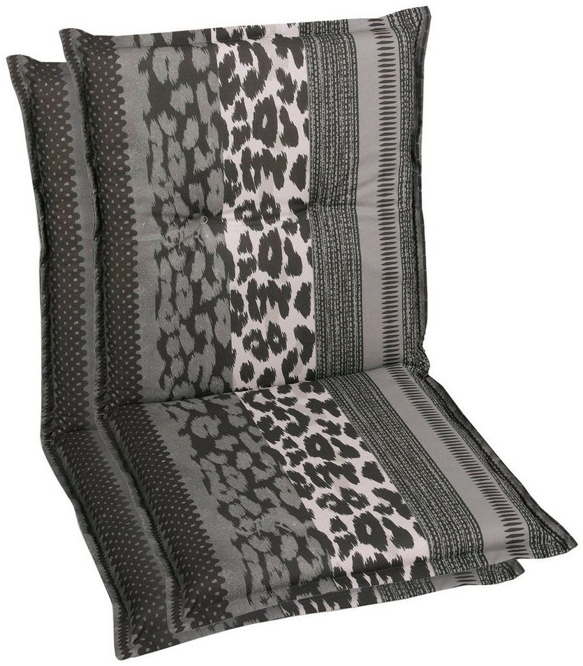 Anzahl Teile , 2 St., |Höhe , 100 cm, |Breite , 50 cm, |Tiefe , 48 cm, |Stärke Auflagen , 70 mm, |Material , Baumwolle, Polyester, |Materialzusammensetzung , Bezug: 65% Polyester, 35% Baumwolle, |Materialeigenschaften , UV-beständig, |Farbe , grau, |Pflegehinweise , Handwäsche, |Herstellungsland , Made in Germany, |