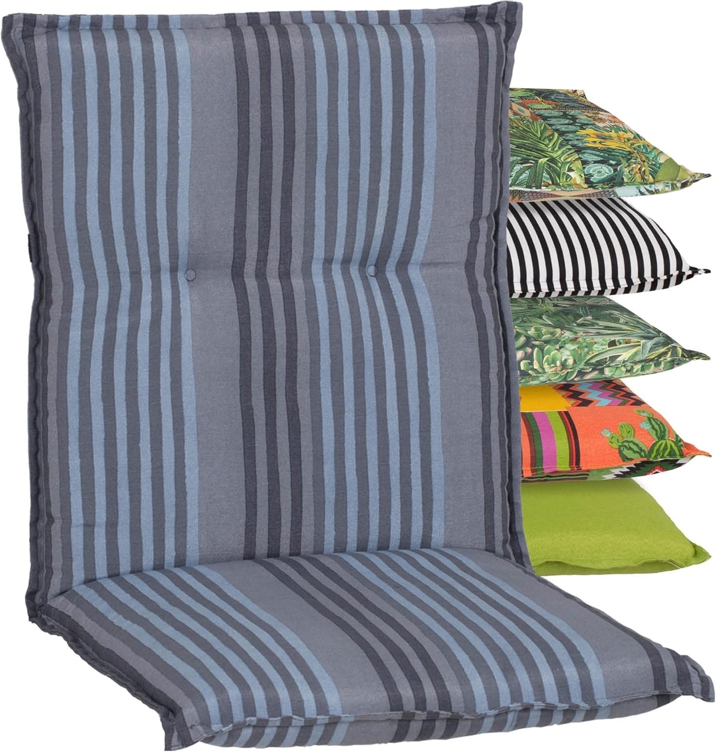 Die BEO Saumenauflage für Niederlehnerstühle - Tissa im dänischen Design überzeugt durch ihren hohen Komfort und die ansprechende Optik. Mit einer 8 cm dicken Schaum-/Vlies-Füllung bietet sie ein angenehmes Sitzerlebnis. Der Bezug aus einem stabilen Struktur-Mischgewebe (25% Polyester, 75% Baumwolle) ist UV-beständig und behält seine Farben. Die Auflage hat die Maße 98x46 cm und ist pflegeleicht bei 30°C waschbar. **Highlights** - 8 cm dicke Schaum-/Vlies-Füllung für hohen Komfort - UV-beständiger Bezug für langanhaltende Farben - Handgefertigt in Europa mit schadstofffreien Materialien - Minimalistisches blau-graues Streifen-Motiv als Eyecatcher - Pflegeleicht, waschbar bei 30°C **Produkteigenschaften** - Maße: 98x46 cm - Material: 25% Polyester, 75% Baumwolle - Pflege: Handwäsche bei 30°C - Saumrand: ca. 1,5 cm breit - Bindebänder und Rüschengummi-Halteband zur Befestigung