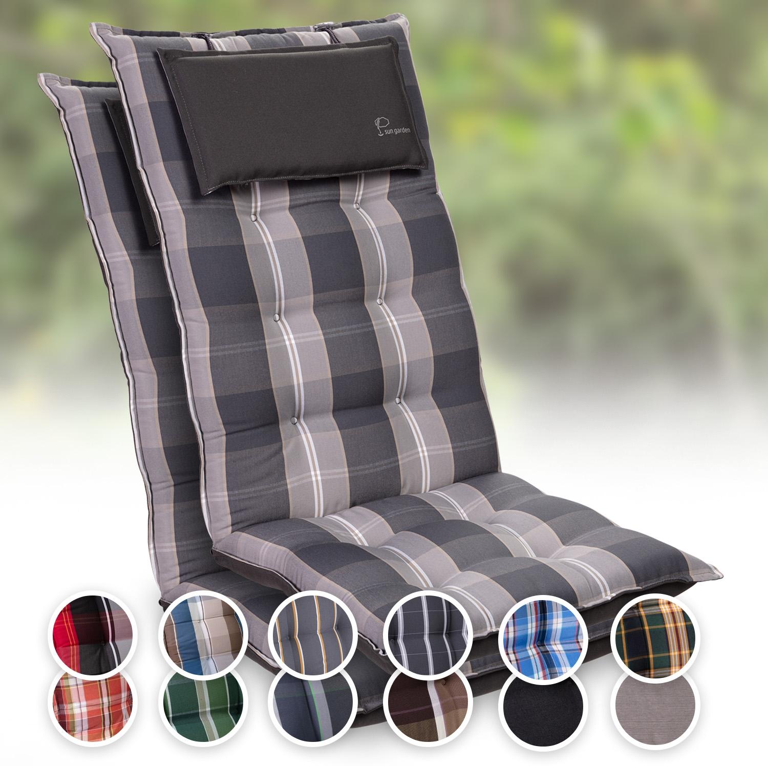Die blumfeldt Sylt Polsterauflage verwandelt Ihre Gartenstühle in eine gemütliche Wohlfühloase. Mit einer Größe von 50 x 120 x 9 cm (BxHxT) und einem 9 cm dicken Schaumstoffkern bietet sie ein angenehmes Sitzgefühl. Der strapazierfähige und UV-beständige Polyesterbezug sorgt für Langlebigkeit. Die Auflage ist nach OEKO-TEX® Standard 100 zertifiziert und verfügt über ein abnehmbares Kopfpolster sowie Halteband und Bindekordeln für eine sichere Anbringung. **Highlights** - Extra lange Auflage für Hochlehner-Stühle - 9 cm dicker Polsterkern für hohen Komfort - Strapazierfähiger und UV-beständiger Polyesterbezug - Abnehmbares Kopfpolster für zusätzlichen Komfort - Zertifiziert nach OEKO-TEX® Standard 100 **Produkteigenschaften** - Gesamtmaße: ca. 50 x 120 x 9 cm (BxHxT) - Rückenfläche: ca. 50 x 73 cm (BxH) - Sitzfläche: ca. 50 x 47 cm (BxL) - Gewicht: ca. 1 kg **Lieferumfang** - 2 x Auflage