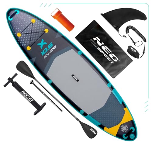 Neo-Sport Aquasurf 10.6Aufblasbares Stand Up Paddle Board Set, 320 cm, inkl. Paddel, Handpumpe, Rucksack und Zubehör, 140 kg Tragfähigkeit, rutschfestes EVA-Deck